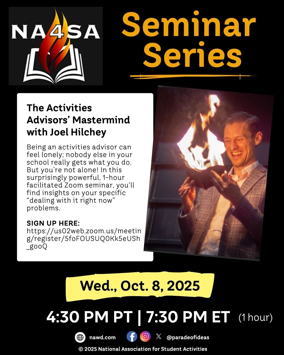 We invite EVERYONE interested in student activities, leadership training, and speaking/presenting to explore our website and to become an active part of YOUR National Association for Student Activities, NA4SA!