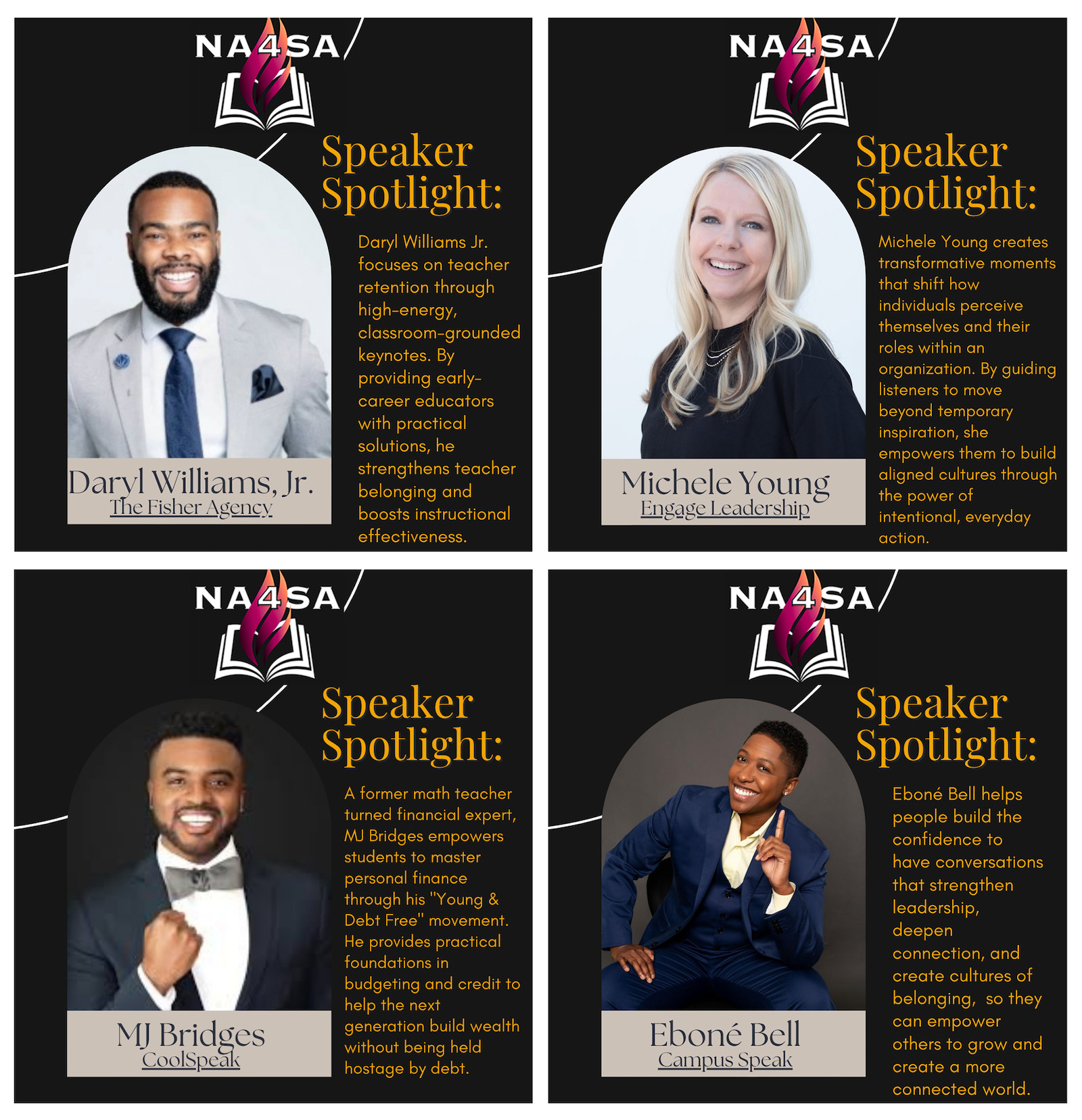 The Speaker Spotlight gives activity professionals the chance to preview dynamic presenters, discover new talent, and find the perfect fit for your school or program. Come ready to be inspired and leave with a list of speakers who can make a real impact on your program!